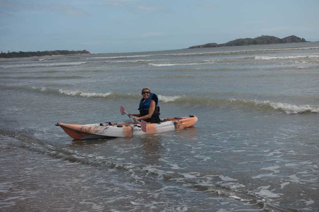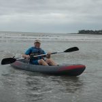 Heute geht’s sportlich weiter, denn wir leihen uns zwei Kajaks aus und paddeln zwei Stunden auf offener See. Es macht super Spaß, auch wenn wir wegen der Strömung und der Wellen kaum voran kommen. Das hier ist noch mal eine andere Hausnummer, als das gemütliche dahin Paddeln in einem Creek!