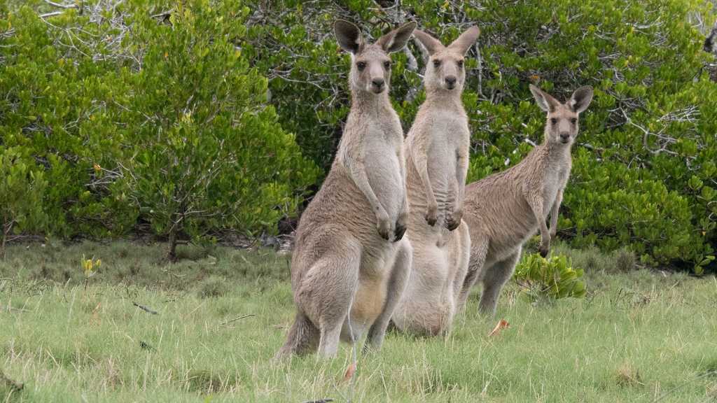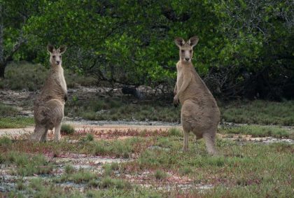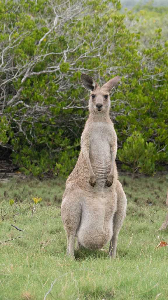 Am späteren Vormittag fahren wir zuerst 33 km zum Tuckey Beach. Hier entdecken wir endlich wieder unsere ganz besonderen Freunde, die Kängurus!