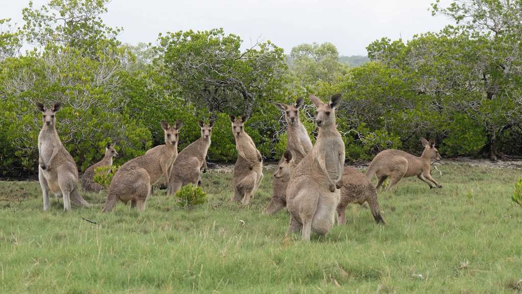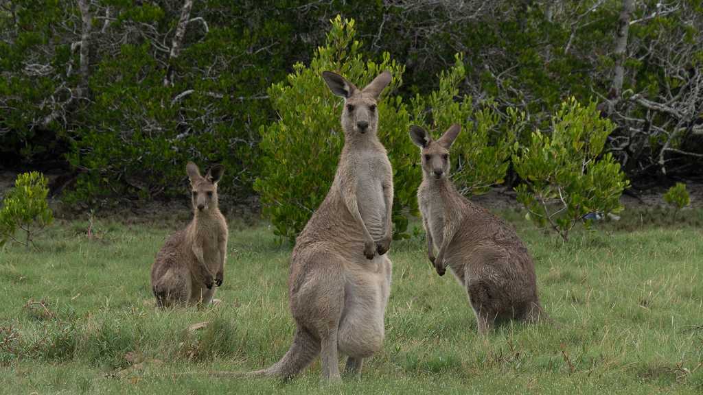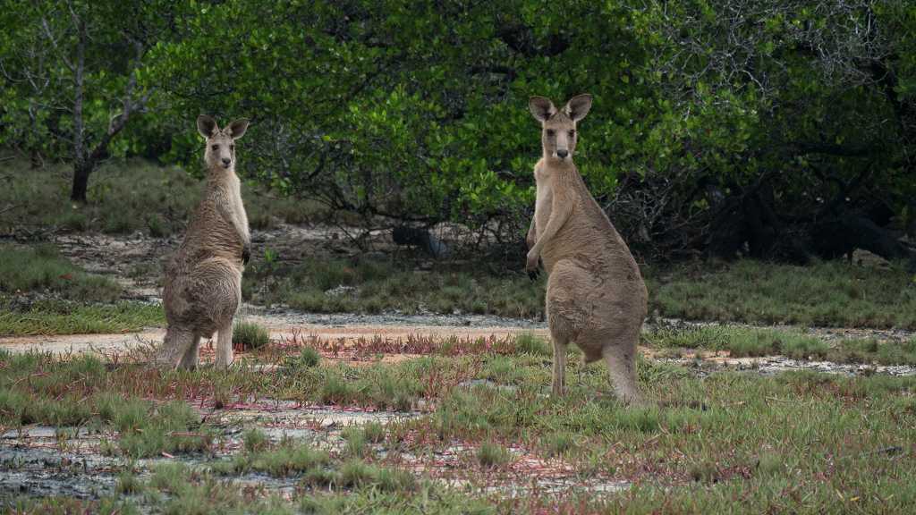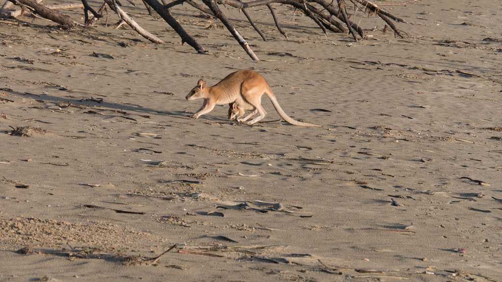 Bei Sonnenaufgang zeigen sich am Strand des Cape Hillbsborough Natur Tourist Parks täglich einige Wallabies. Deshalb stellen wir den Wecker und fahren die 11 km am nächsten Morgen noch einmal. Hoffentlich kommen wir nicht zu spät! Werden die Tiere auch heute zu sehen sein? Überzeugt euch selbst: