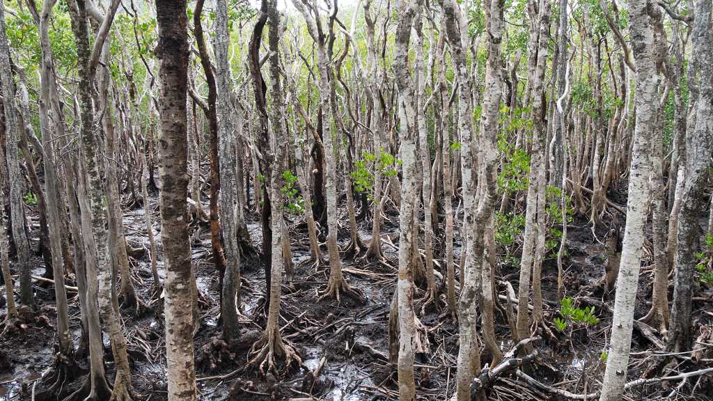 Am Nachmittag fahren wir zum Cape Hillbsborough NP und wandern zuerst den „Diversity Boardwalk“ mit einer Länge von 1,2 km durch sumpfigen Mangrovenwald.