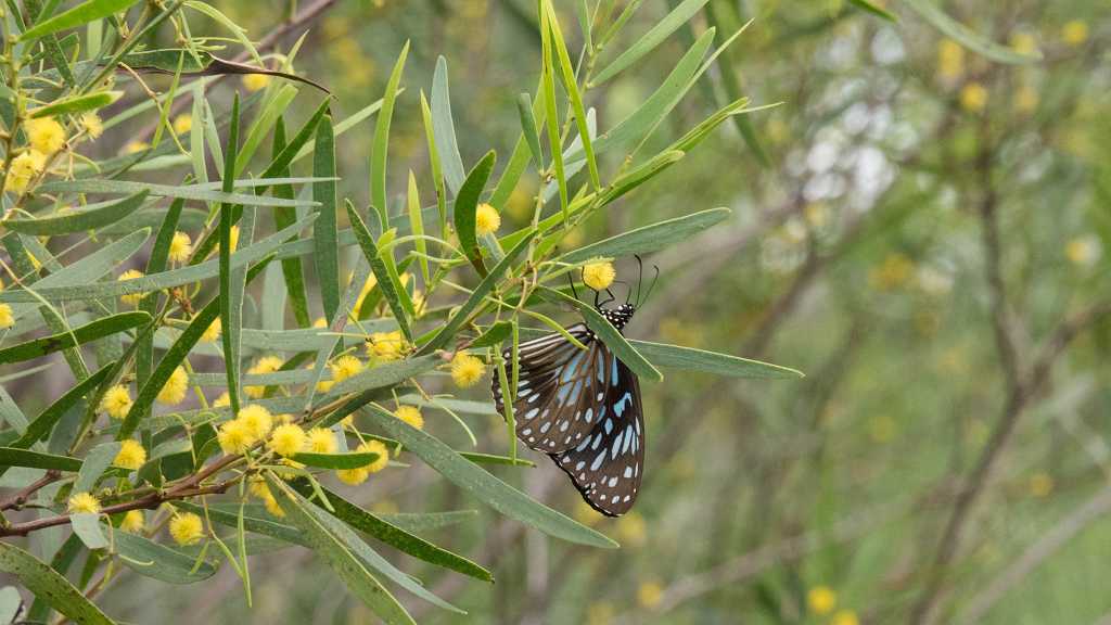 Ein paar Kilometer weiter, am „Cape Hillbsborough Natur Tourist Park“, starten wir die nächste Wanderung zum „Andrews Point“. Über 2,8 km laufeb wir durch wilden Eukalyptuswald und erfreuen uns an zahlreichen bunten Schmetterlingen.