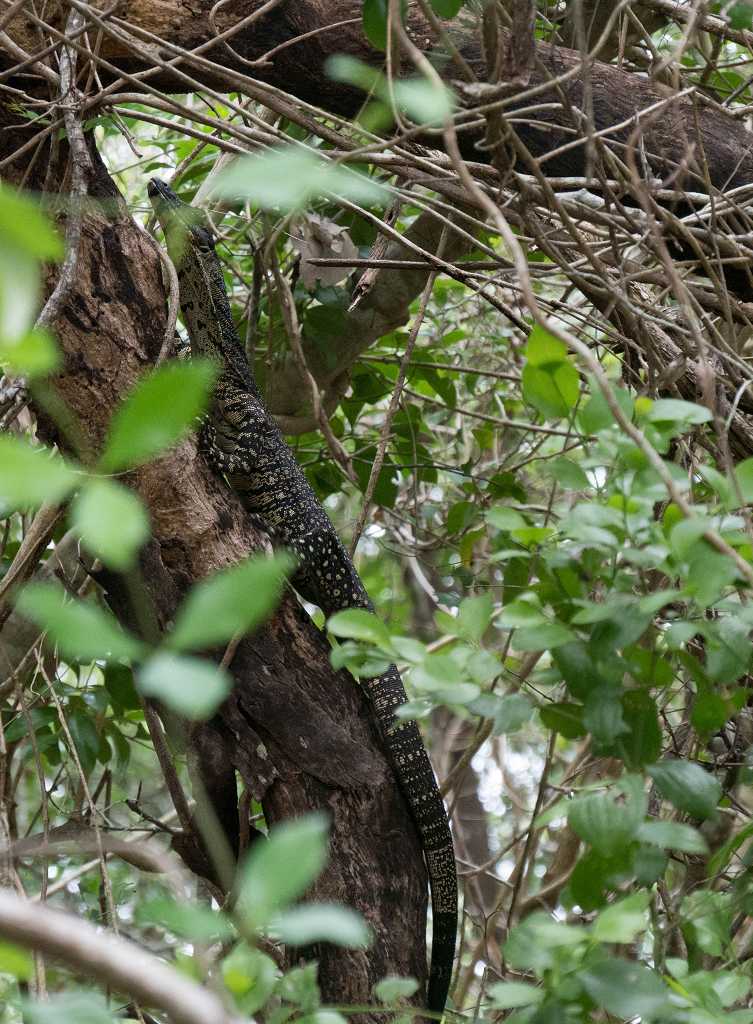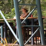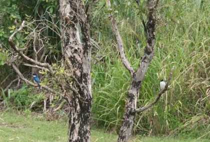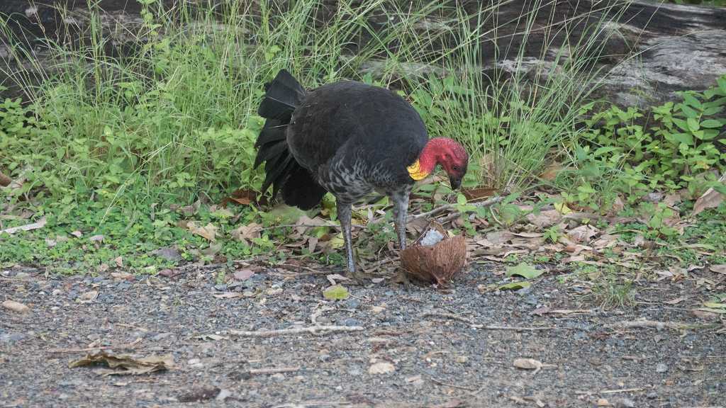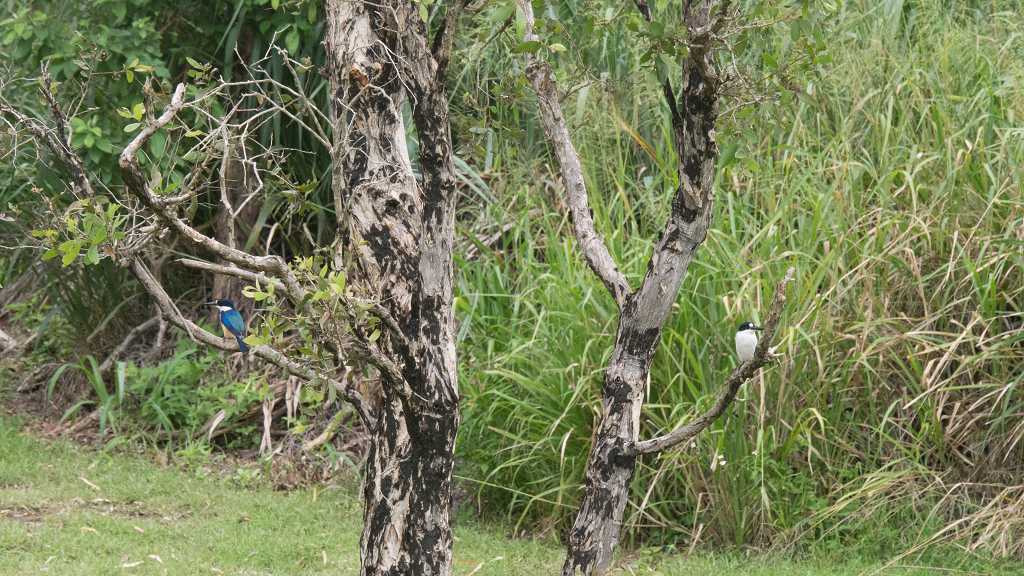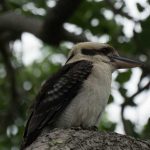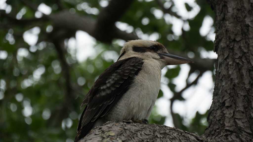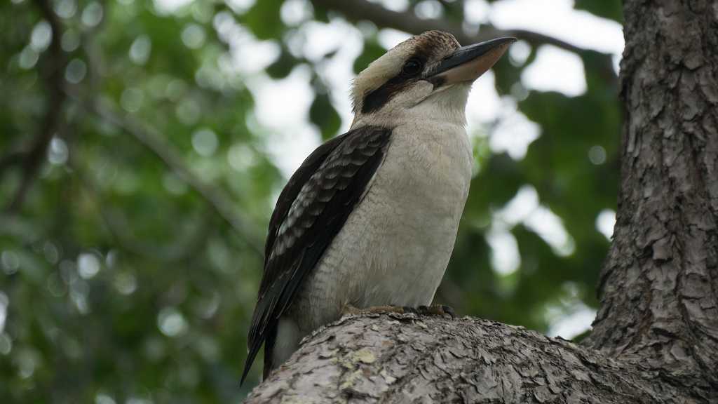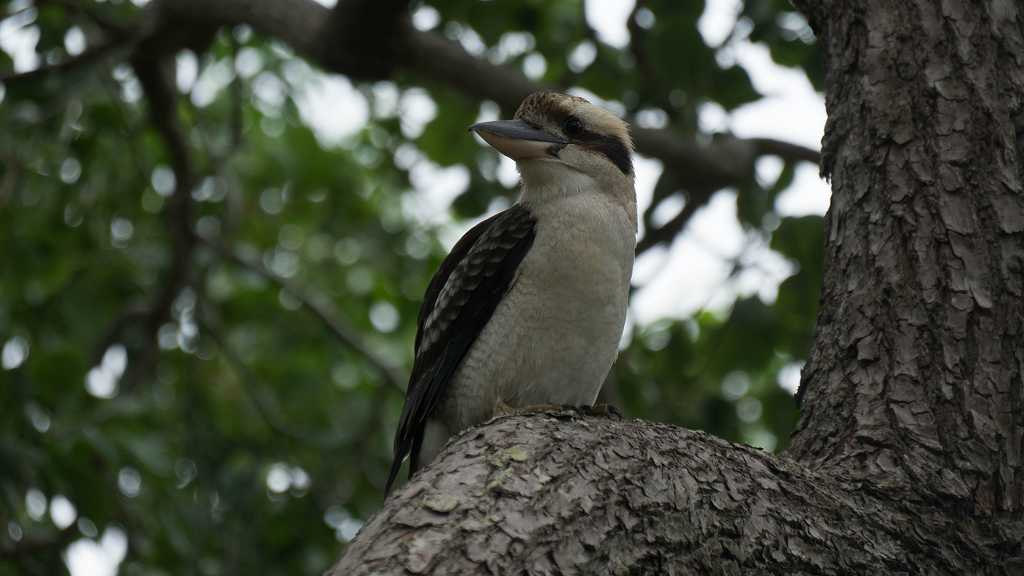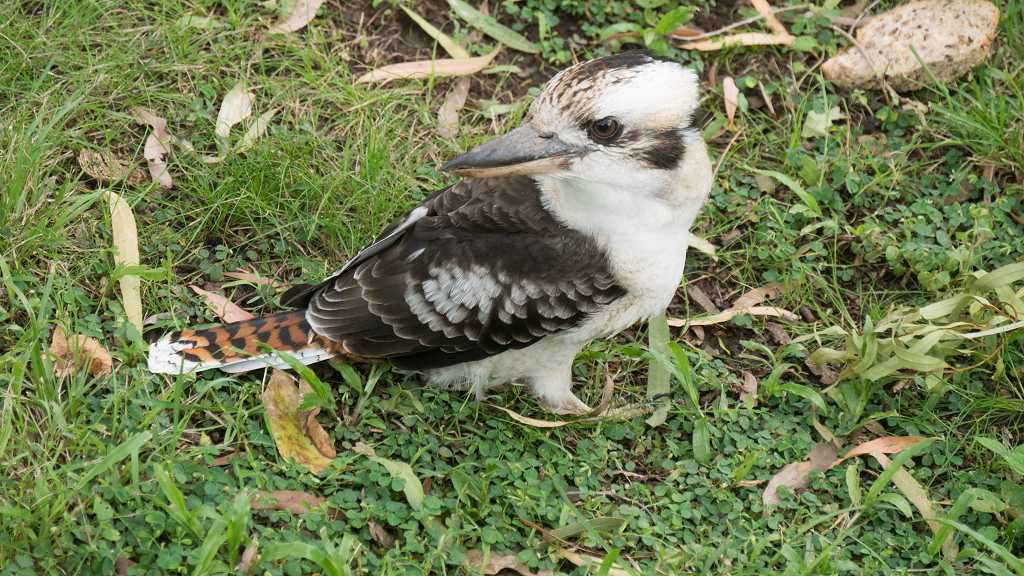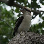 Drei Kookaburras locken zuerst unsere Aufmerksamkeit auf sich, indem sie ihre markanten Laute von sich geben und sich auf einem Ast im Baum über uns niedergelassen. Thomas zückt sofort die Kamera und ist in seinem Element. So bemerkt er auch erst hinterher, dass einer der drei Gesellen im Sturzflug über mich herfällt und mir eine Brötchenhälfte vom Teller klaut!