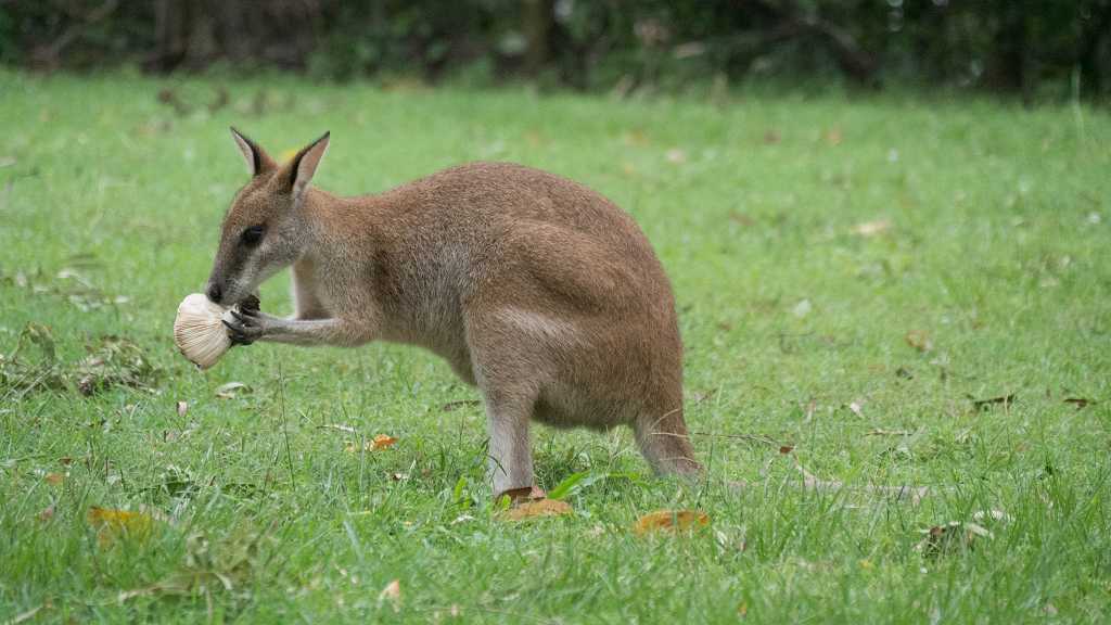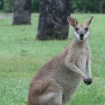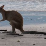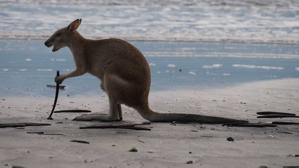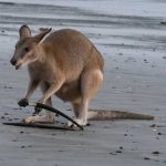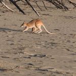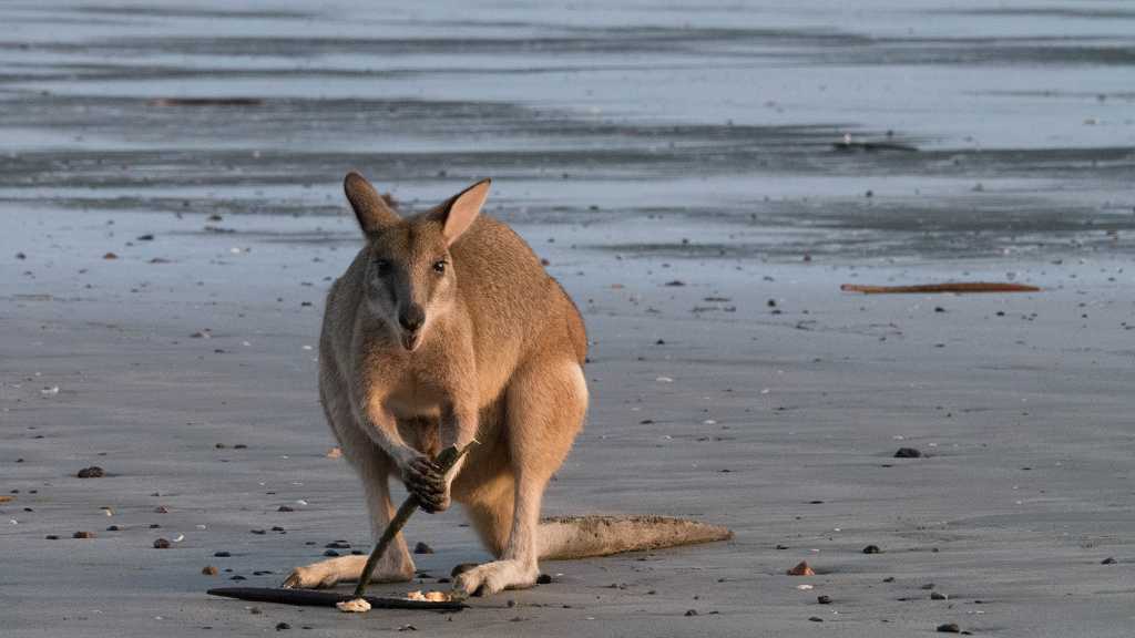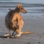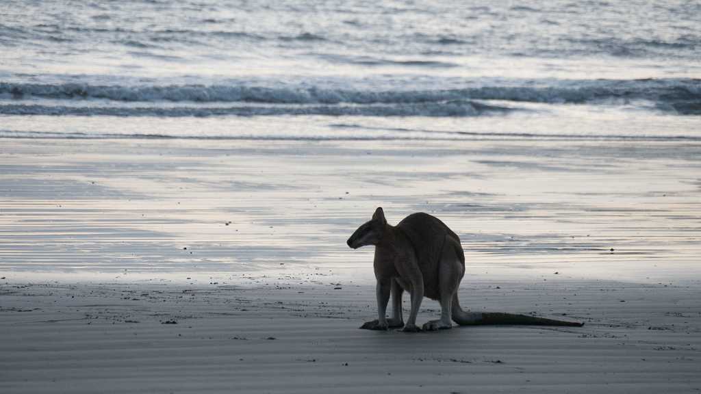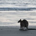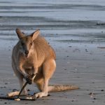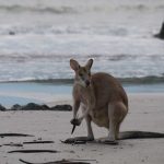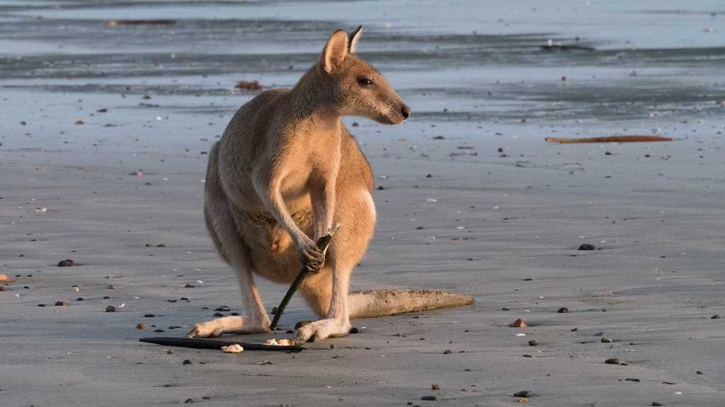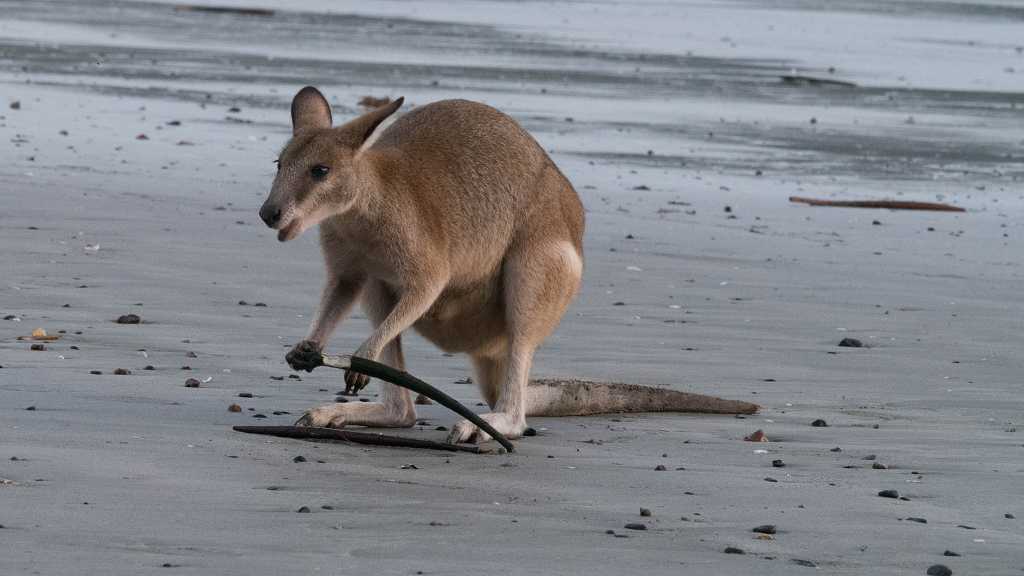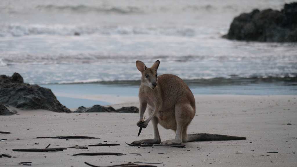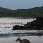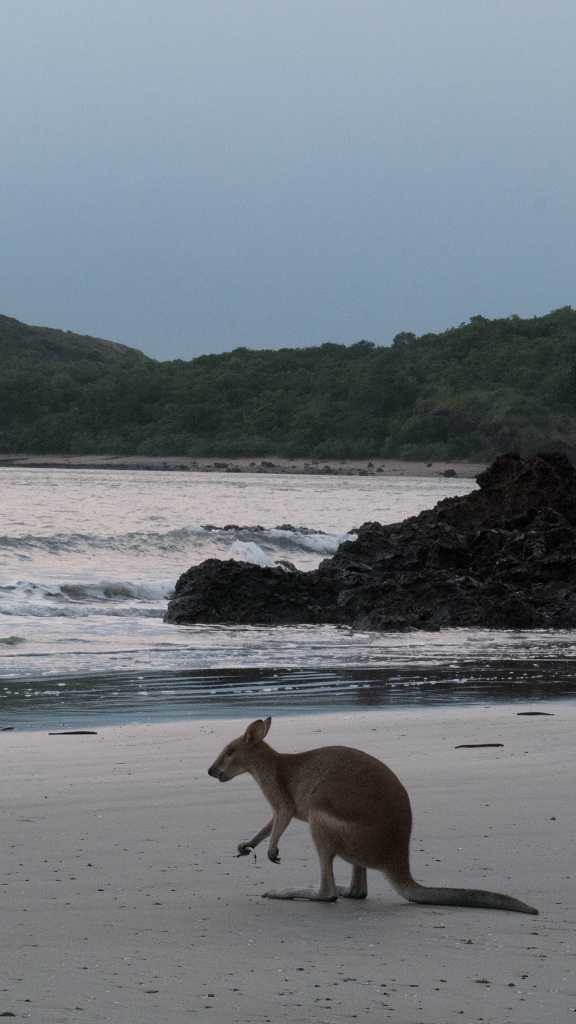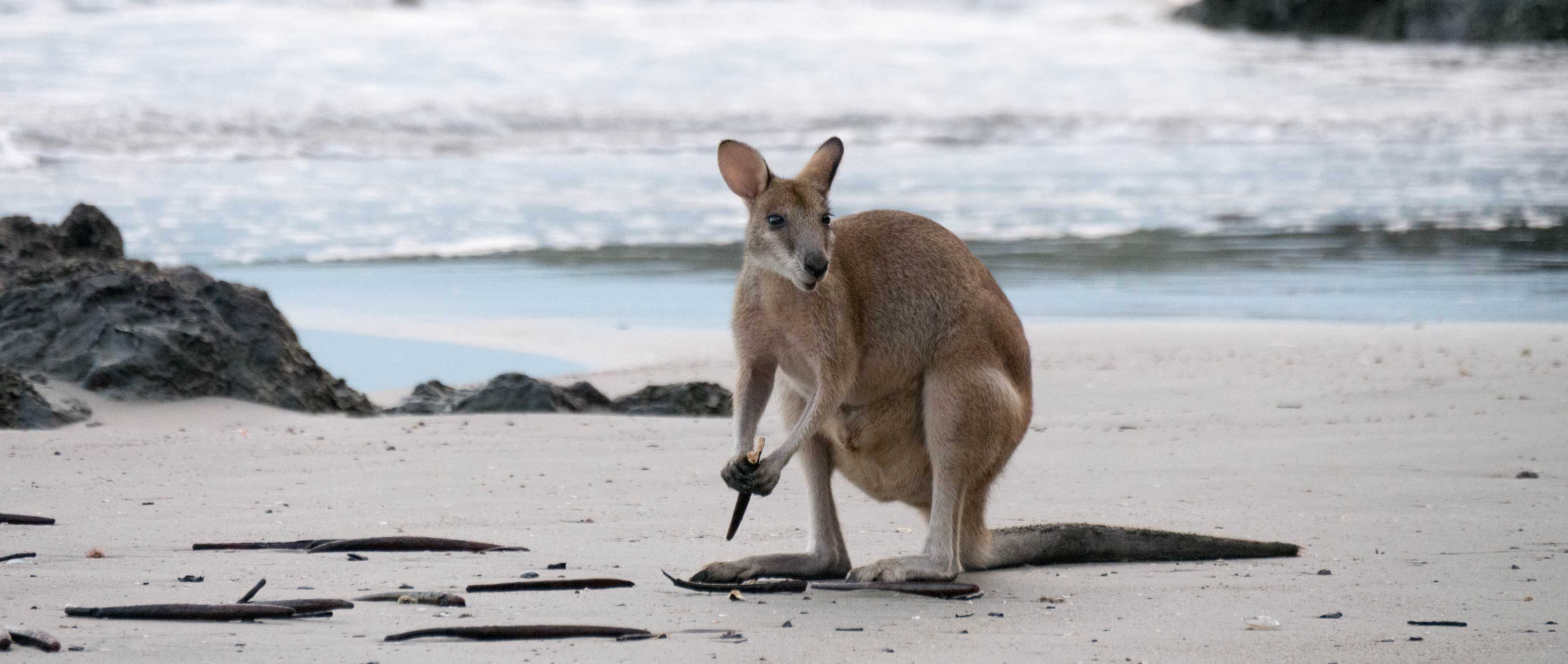 Am Strand des Natur Tourist Parks lässt sich noch ein Wallaby blicken. Es lädt uns ein, morgen früh noch einmal her zu kommen…