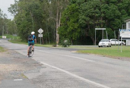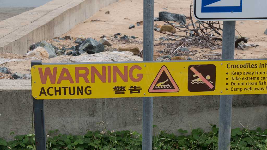 Am Nachmittag verspüre ich auch Lust, mit dem Fahrrad zu fahren und so radeln wir gemeinsam zum Bootsanleger in Seaforth, vorbei an Mangroven, schönen Grundstücken und lesen zum ersten Mal eine Warnung vor Krokodilen!