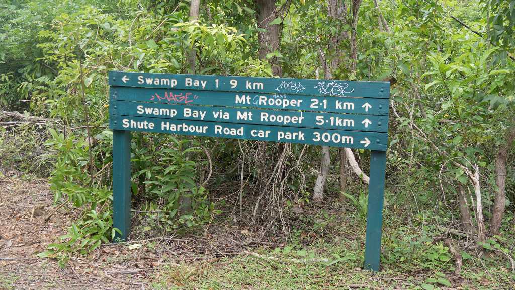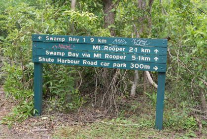 Unsere Nachmittagswanderung starten wir am Fuße des Mount Rooper und laufen insgesamt 7,2 km den „Mount Rooper Circuit and Swamp Bay Track“.