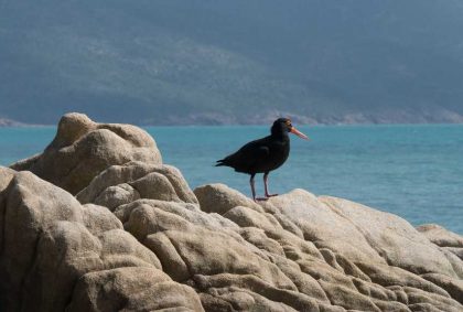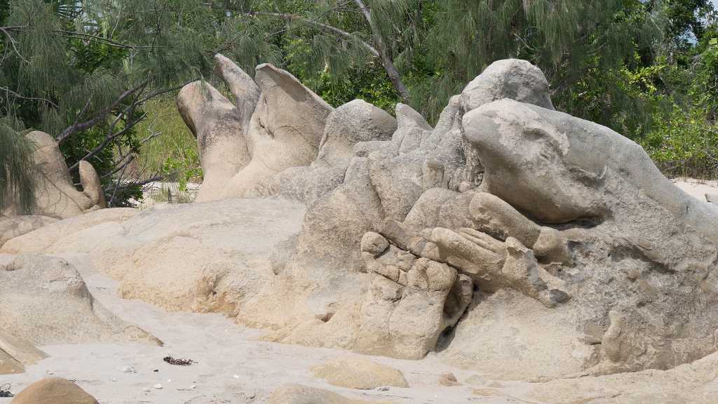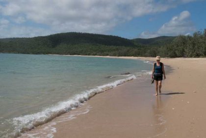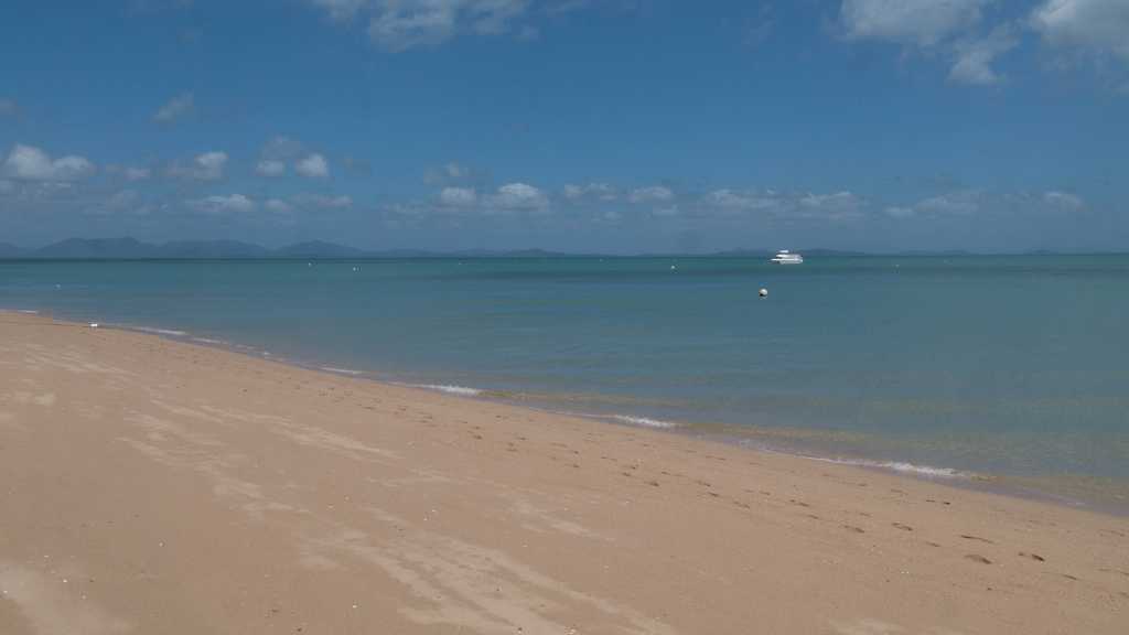 Aus diesem Grund nehmen wir am Montag noch eine selbstgestaltete Tagestour in Angriff. Das Cape Cloucester, unweit von Airlie Beach, ist unser Ziel. Zuerst fahren wir zur „Dingo Bay“, ein idyllischer Landstrich, mit feinem Sandstrand und türkisfarbenem Meer. Einige kleine Inseln sowie runde Felsbrocken sind vorgelagert und komplettieren den Eindruck von einem Hauch Karibik.