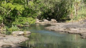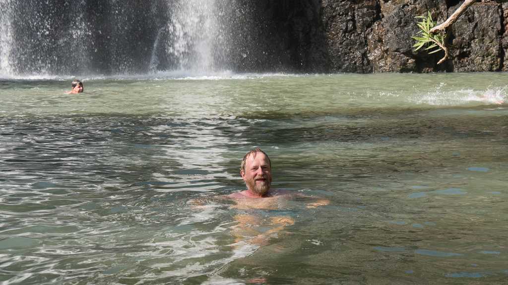 Die Badestelle allerdings lädt nicht wirklich zum Baden ein, denn sie ist winzig klein. Es ist schade, dass man hier zwar das Meer immer in der Nähe hat, aber fast nirgends gefahrlos baden kann! Meistens sind die gefährlichen Würfelquallen das Problem, manchmal die Krokodile oder ein zu rauher Ozean!