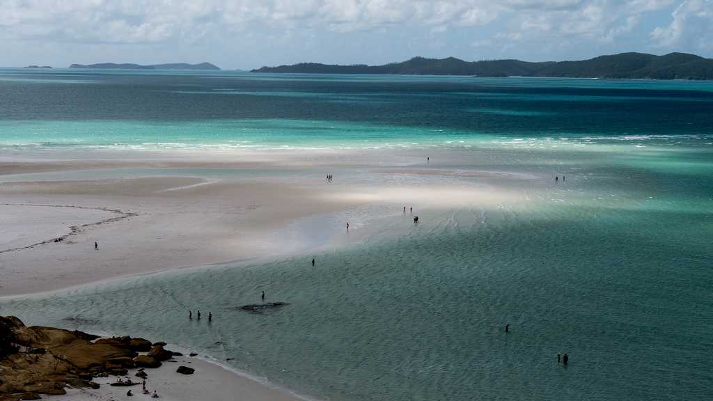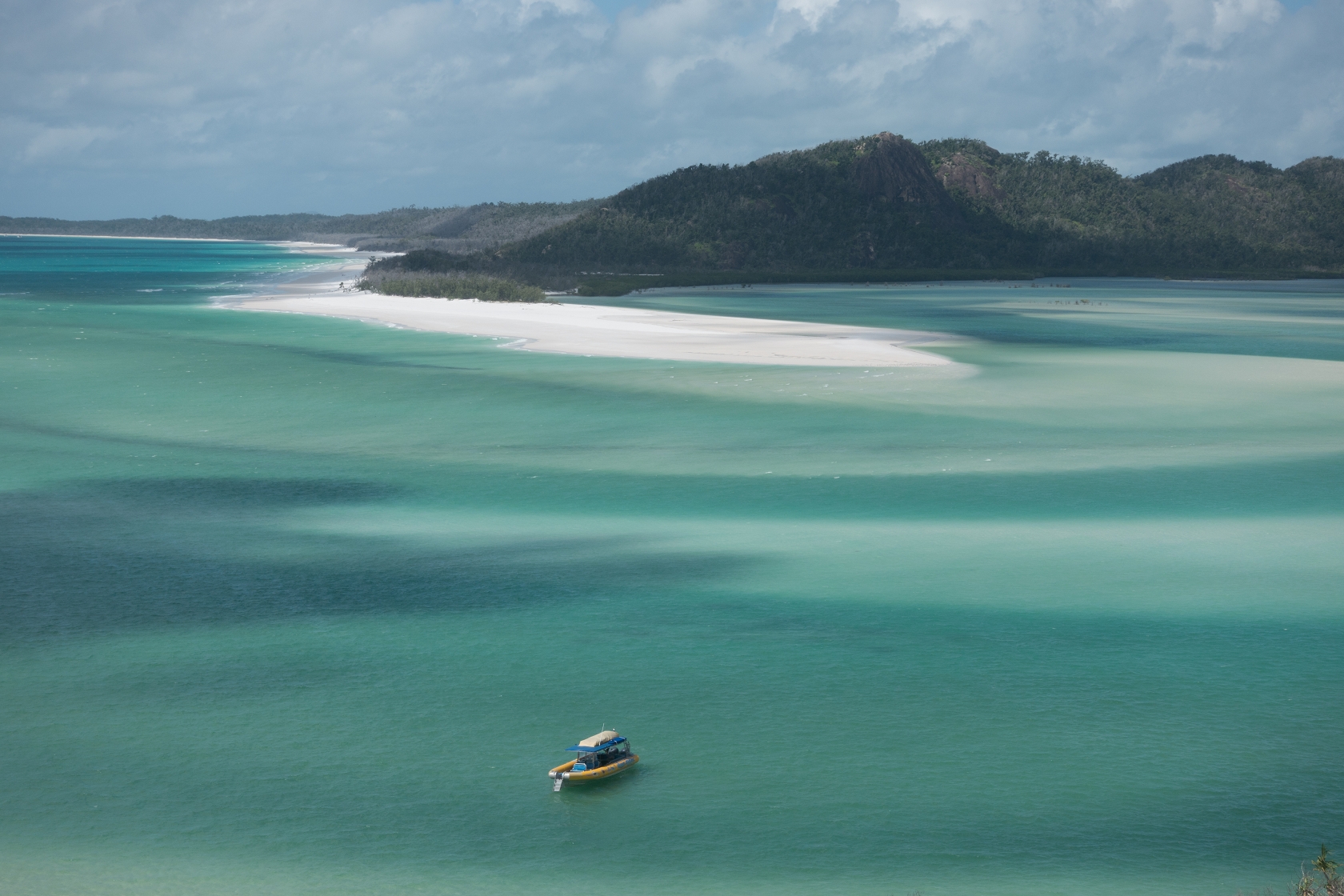Unter uns breitet sich der berühmte „Whitehaven Beach“ aus und wir begreifen langsam, weshalb er als einer der schönsten Sandstrände der Welt gilt. Verzückte Ausrufe der Begeisterung sind bei jedem Neuankömmling zu hören.