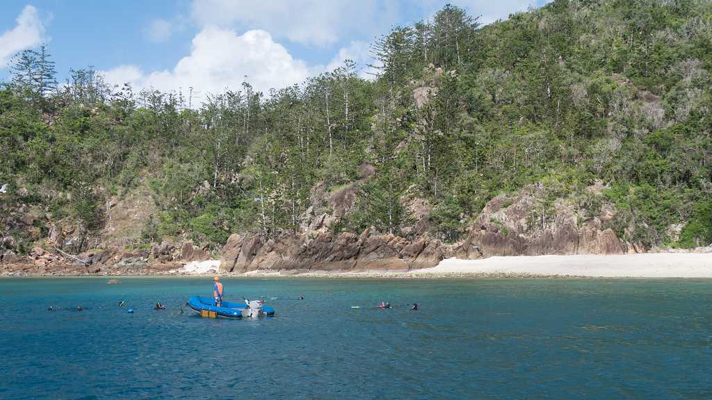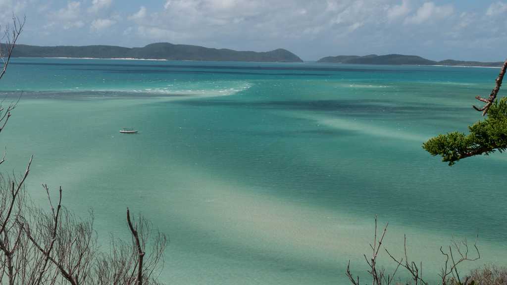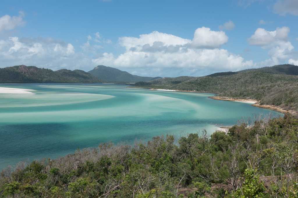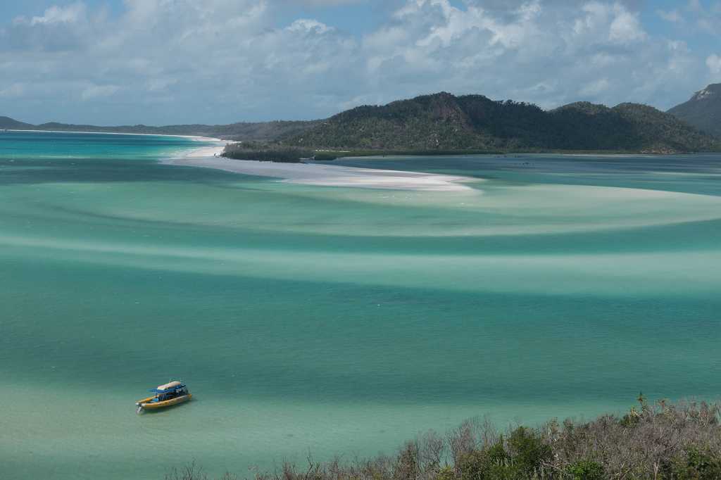 Bereits nach 45 min erreichen wir die Hauptinsel Whitsunday Island an der „Tongue Bay“. Von hier wandern wir in der Gruppe hinauf zum „Hill Inlet Lookout“ und genießen die traumhaftesten Ausblicke auf das Korallenmeer, die wir jemals gesehen haben!