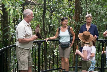 Mit dem Minibus fahren wir nach Mossum Gorge und tauchen zu einem 700 m kurzen Walk in den Regenwald ein. Rob erzählt viel Interessantes über verschiedene Pflanzen und Tiere in diesem Habitat.