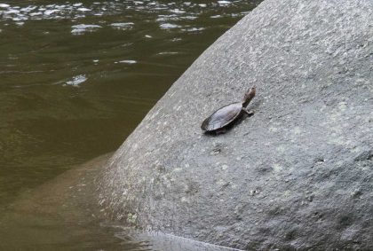 Nach dem Mittagessen könnten wir uns im Wasser erfrischen und abkühlen. Allerdings ist uns die Strömung am Einstieg zu stark, so dass wir alle verzichten…