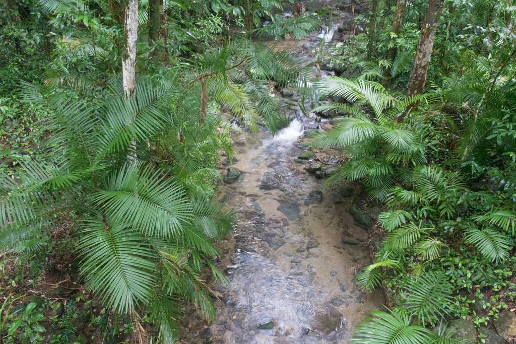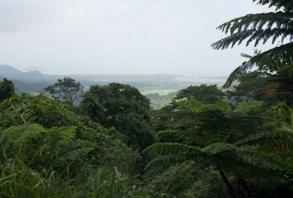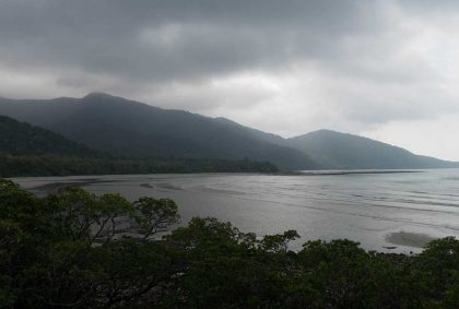 Auf der anderen Seite des Flusses empfängt uns Rob wieder mit dem Minibus und bringt uns zum Startpunkt einer kleinen Wanderung zum „Alexandra Lookout“ am Meer. Hier werden wir mit einer tollen Aussicht auf Coral Sea, Daintree River sowie den Rainforest belohnt, auch wenn die Sonne sich heute nicht zeigt.