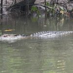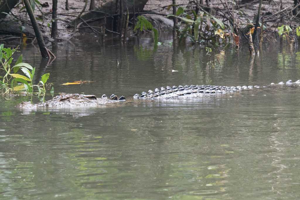 Insgesamt sehen wir drei Krokodile im Wasser und betrachten sie respektvoll aus sicherer Umgebung. Es ist sehr beeindruckend, diese so friedlich dahin gleitenden Wesen im Fluss zu beobachten!