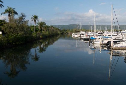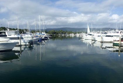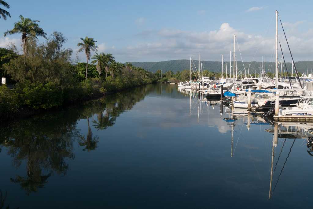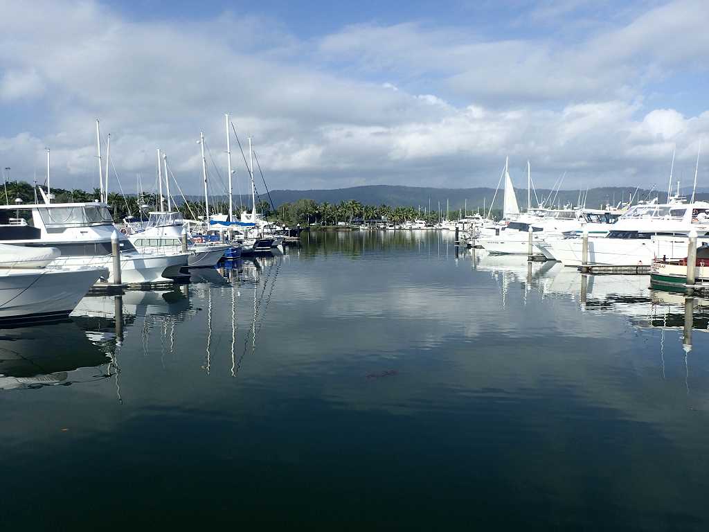 Das malerisch gelegene Ferienparadies Port Douglas ist ein natürlich gebliebenes Tropenstädtchen. Heute bleiben wir hier und genießen einen entspannten Tag. Wir spazieren am bilderbuchmäßig gelegenen Hafen „Marina Mirage“ entlang. Der Anblick der vielen Yachten im azurblauen Wasser vor der Regenwaldkulisse im Hintergrund ist schon überwältigend.
