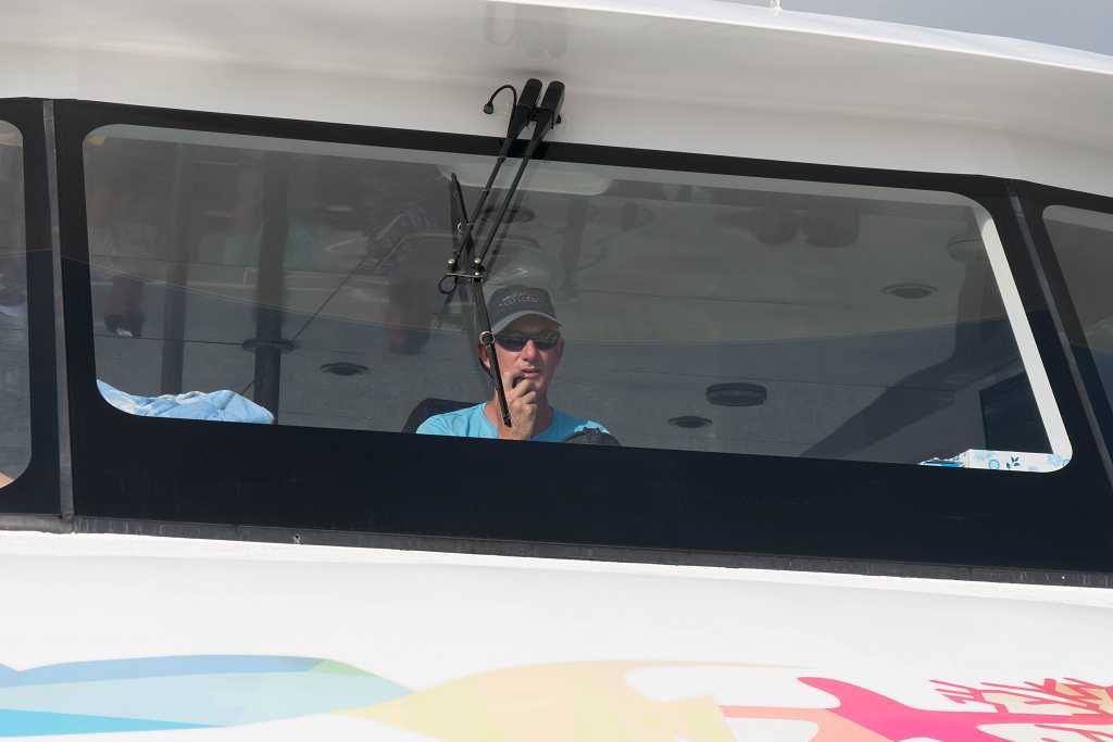 Cathrin ist schon ganz heiß darauf, endlich ins Wasser zu kommen… Thomas hat es während der Fahrt leider übel erwischt, er kämpft mit der Übelkeit und kann sich erst einmal gar nicht vorstellen, ins Wasser zu gehen! Mehrere Mitarbeiter der Crowe kümmern sich professionell um sein Wohlergehen.