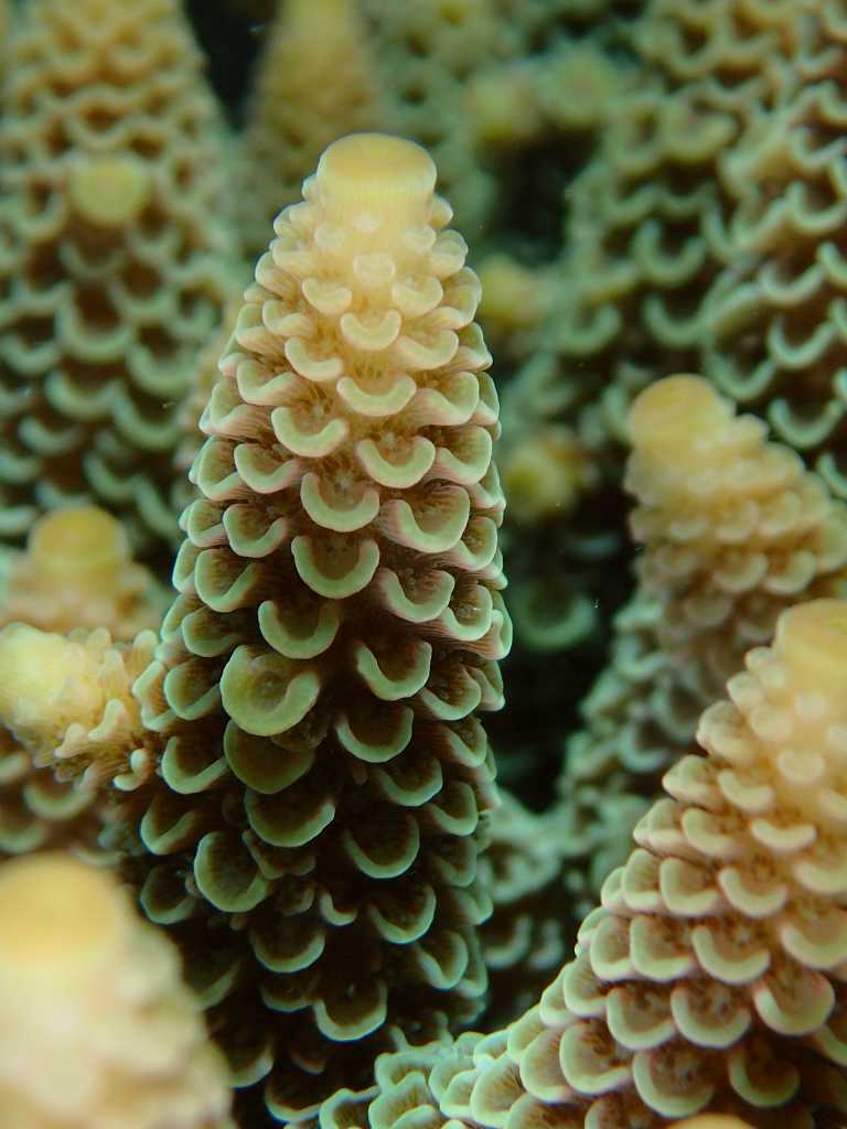 Die meisten Korallen brauchen zum Überleben sogenannte Zooxanthellen. Das sind Algen, die sich in der Außenhaut des Polypen ansiedeln. Alge und Polyp leben in einer Symbiose.