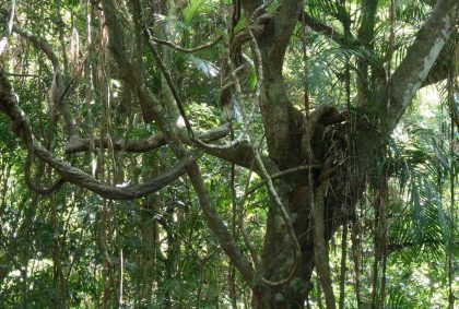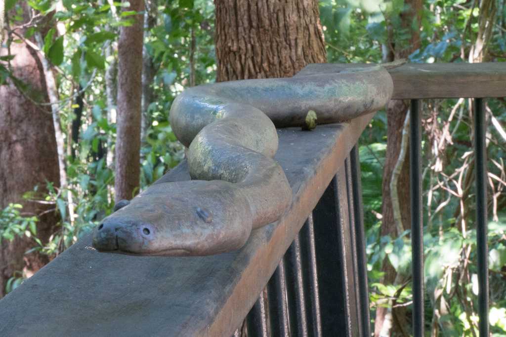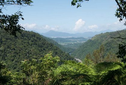 Hier wandern wir den „Barron Falls Lookout“ von ca. 2 km Länge. Zu Beginn führt der Weg auf einen Steg hoch zu den Baumkronen im Regenwald. Faszinierend sind die Blicke nach unten in den alles umschlingenden Dschungel.