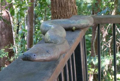 Von Port Douglas aus wenden wir uns ein Stück ins Hinterland der Küste und machen Pause in Mareeba. Hier gibt es eine der größten Mangoplantagen Australiens. Außerdem sehen wir auf der Fahrt zum ersten mal größere Termitenhügel. Mit gebührender Vorsicht, denn auch Schlangen könnte diese Gegend gefallen, nehmen wir diese in Augenschein.