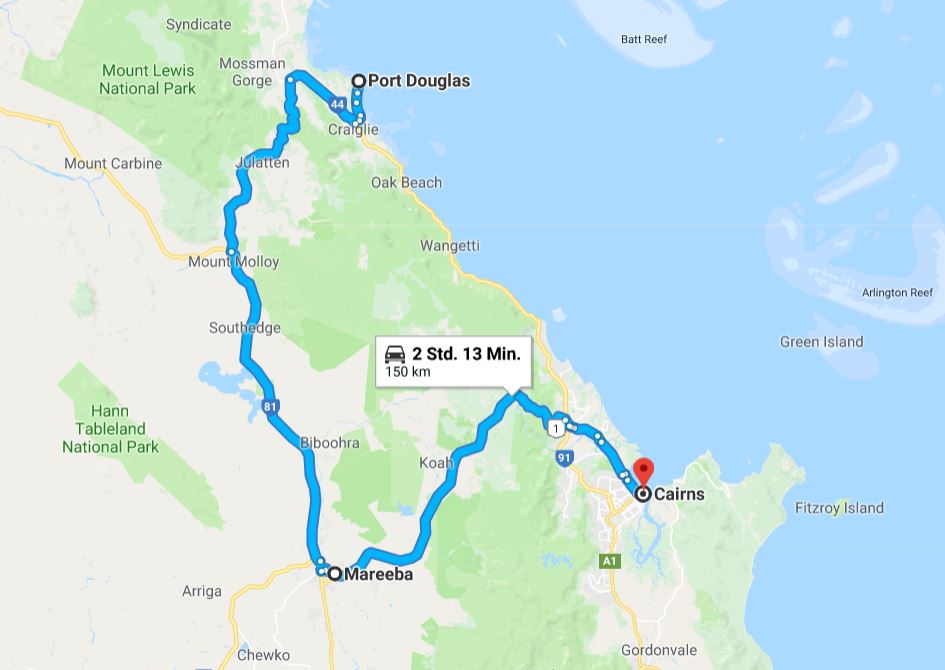 Über den Highway 1 gelangen wir anschließend nach Kuranda, einem kleinen Städtchen in den Atherton Tablelands.
