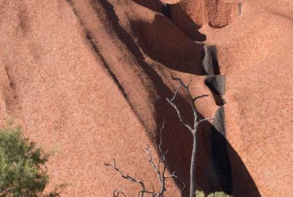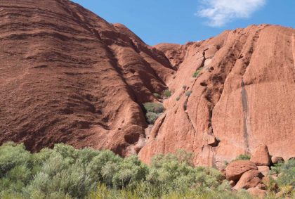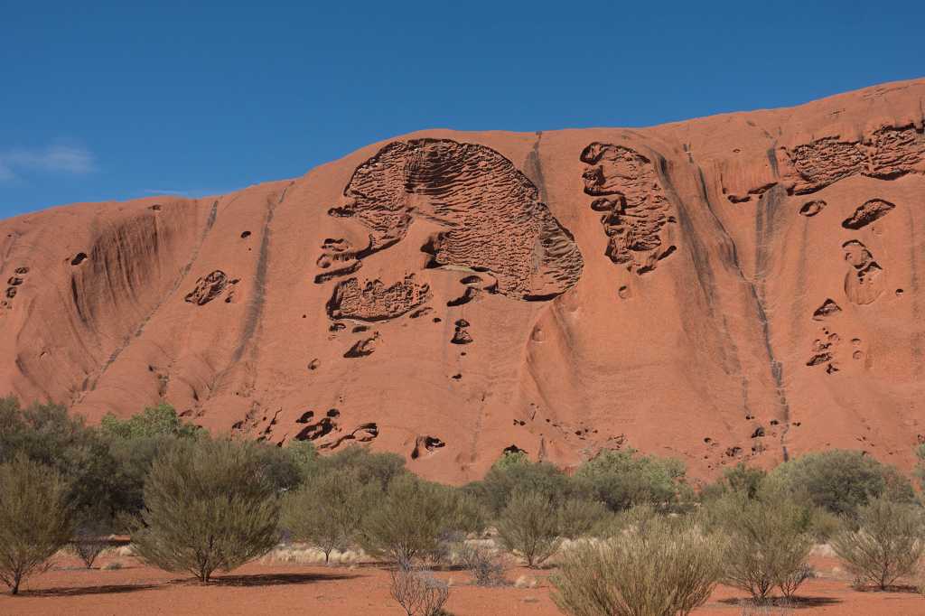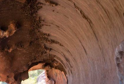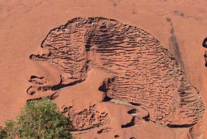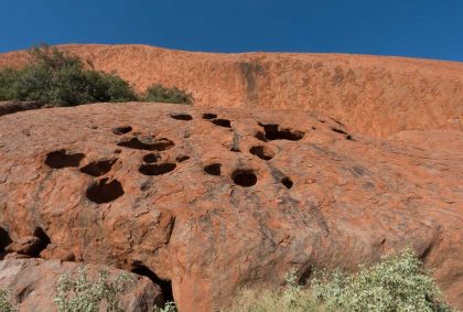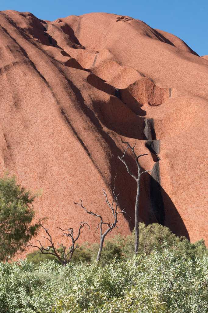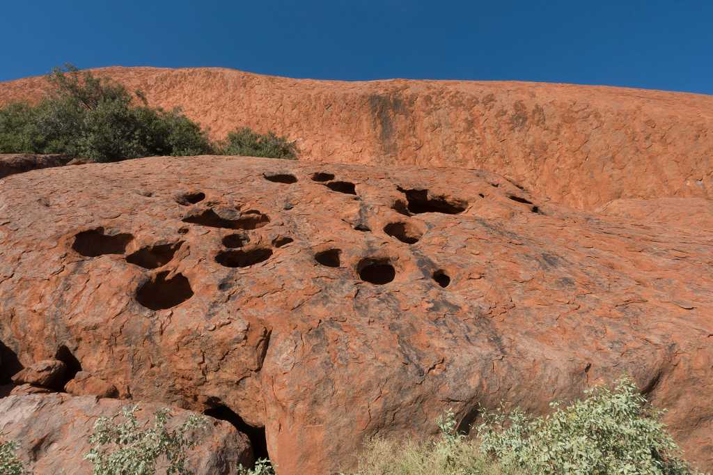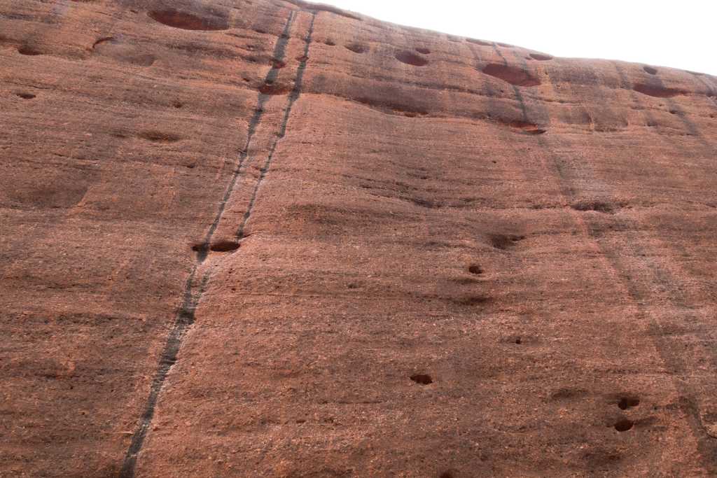 Gut gestärkt für unsere nun folgende Uluru-Umrundung treten wir den 10,6 km langen „Ayers Rock Base Walk“ an. Wirkt er aus der Ferne doch recht glatt und kompakt, zeigt sich aus der Nähe ein ganz anderes Bild!