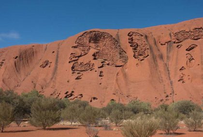 Einige der Legenden der Anangu Aborigines wurden in Form von Jahrtausende alten Felsmalereien am Uluru festgehalten. Gleich zu Beginn des Base Walks finden wir dafür einige schöne Beispiele.