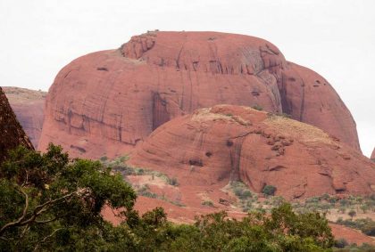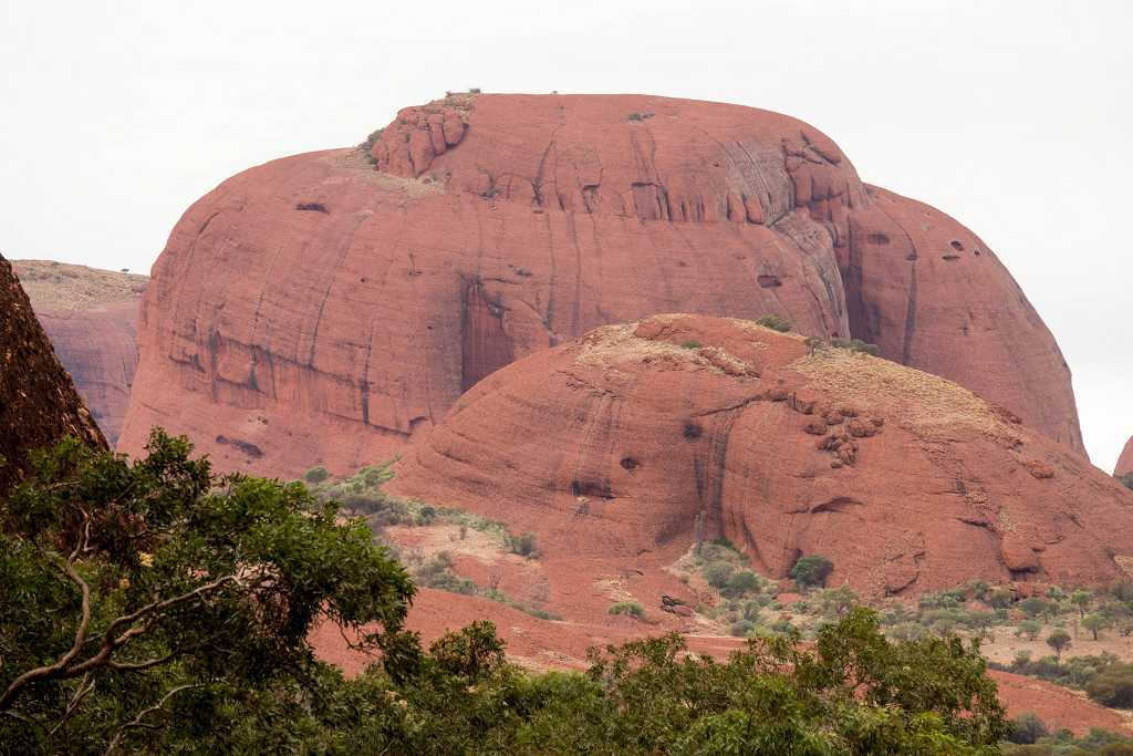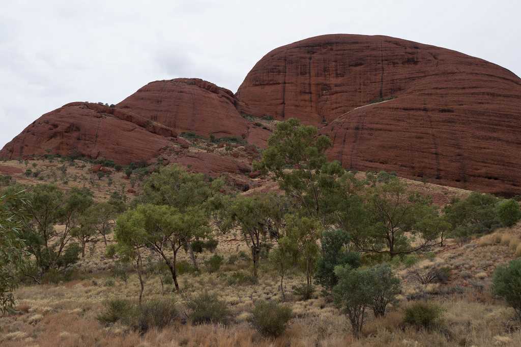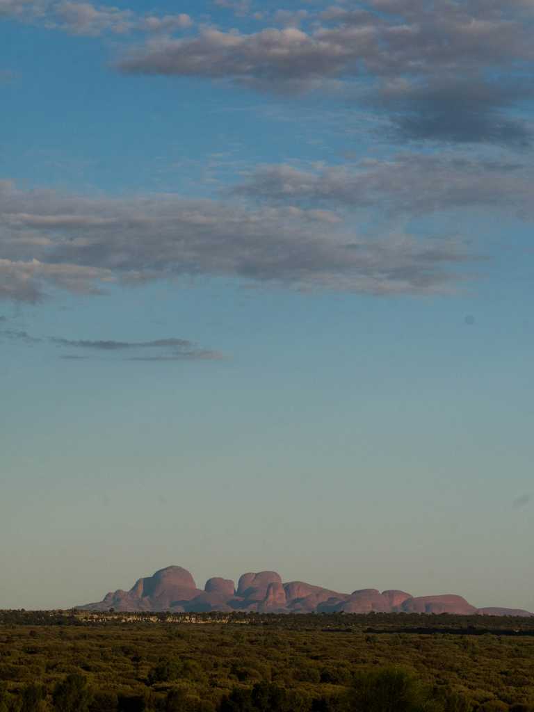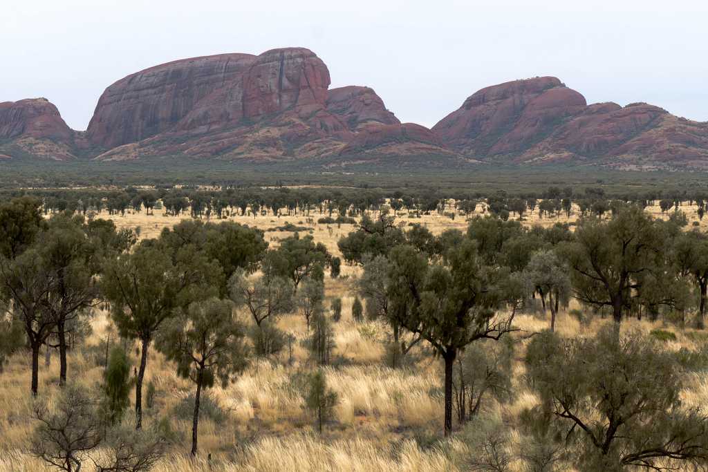Nur etwa 30 Kilometer vom großen Bruder Uluru sind die kleinen Schwestern, „Kata Tjuta“ entfernt. Kata Tjuta bedeutet in der Sprache der Aborigines „viele Köpfe“. Eine treffende Bezeichnung für diese rote Bergformation mit den 36 Kuppeln, die förmlich aus dem Wüstensand zu wachsen scheinen.