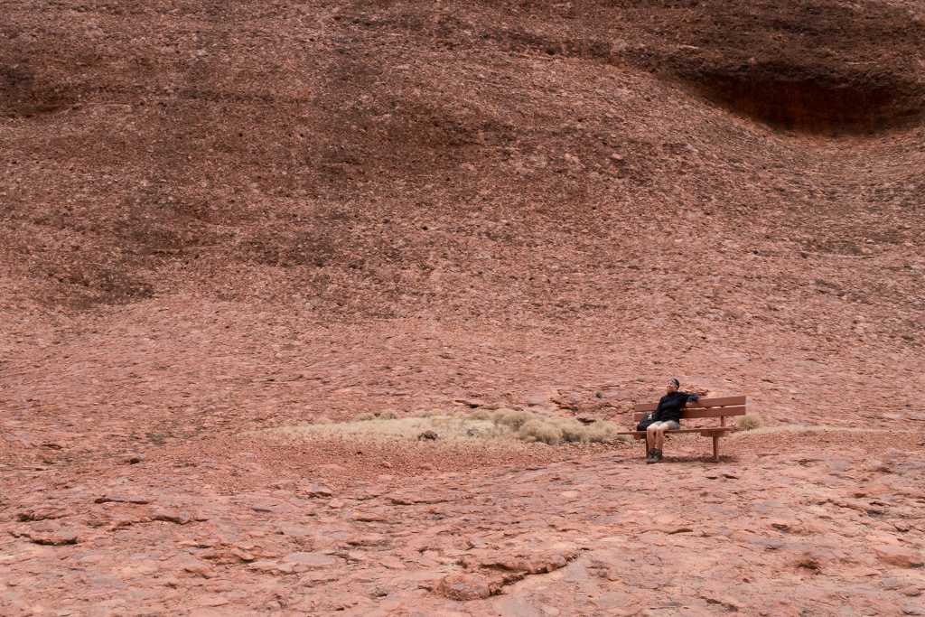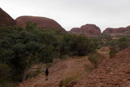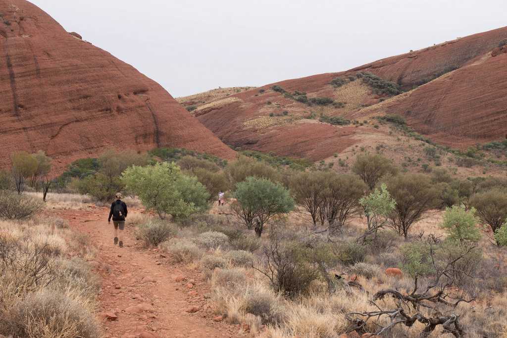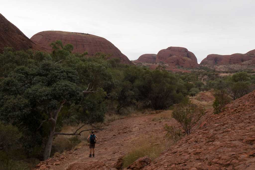 Um diesem Ort etwas näher zu kommen, schnüren wir wieder unsere Wanderschuhe und wandern den „Valley of the Winds Walk“ von 7,2 km Länge. Der Weg führt uns durch die vielen Köpfe der Olgas. Teilweise verläuft er über sandige Wegstrecken, dann wieder kraxelt man über Felsen und kleinere Steine zwischen den roten Kuppelsteinen hindurch.