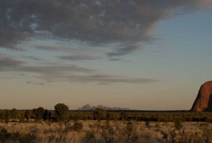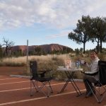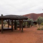Als Basislager für unsere mehrtägige Erkundung des Uluru-Kata Tjuta National Parks dient uns das „Ayers Rock Campground Resort“ in Yulara. Der Campingplatz verfügt sogar über einen eigenen Ayers Rock Sunset Platz. So können wir bereits kurz nach unsere Ankunft mal eben zwischen duschen und Abendessen den Sonnenuntergang am Uluru bewundern.—