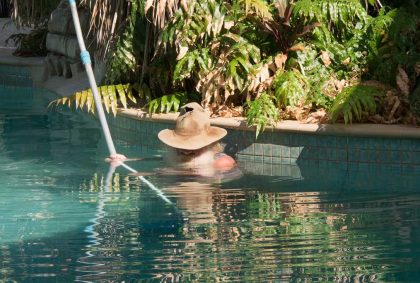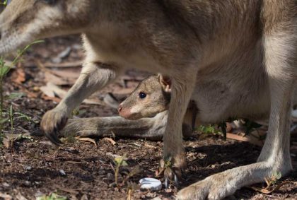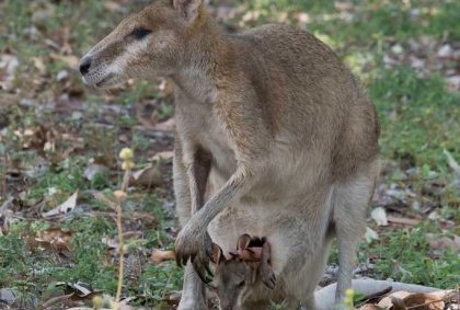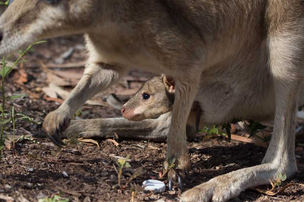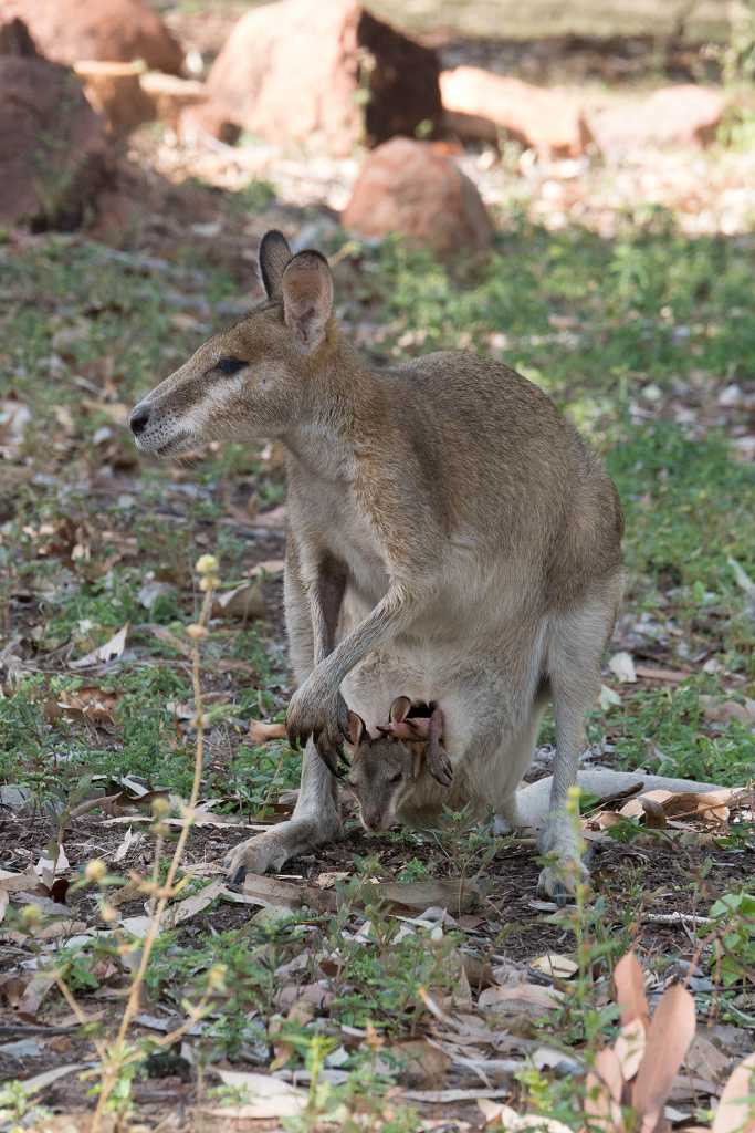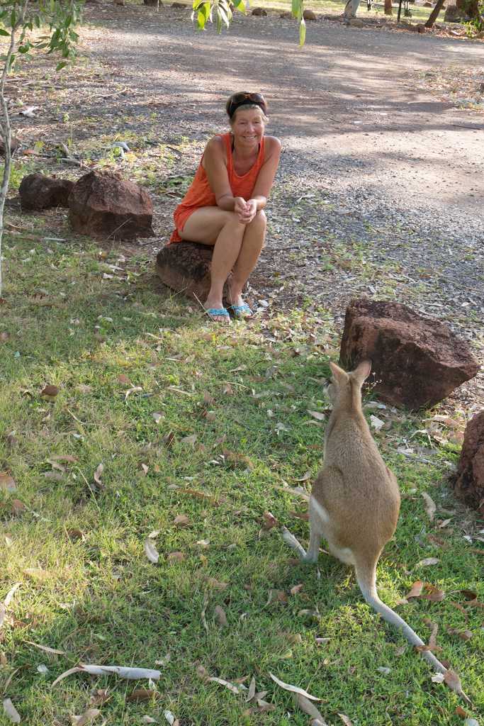 Am Nachmittag sind wir Dauergäste am und im Pool und abends können wir wieder Kängurus beobachten, diesmal sogar mit einem Jungen im Beutel!
