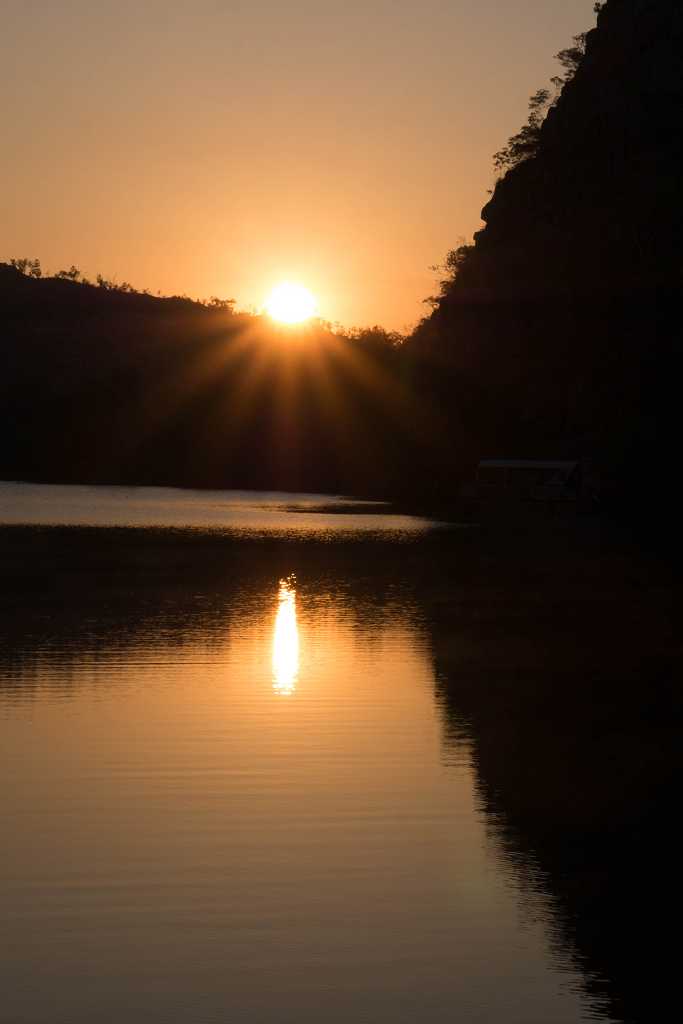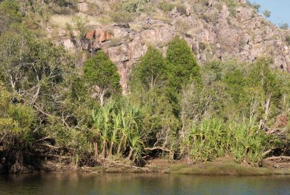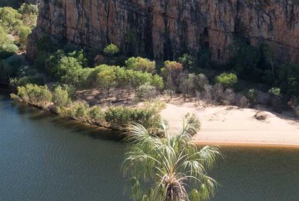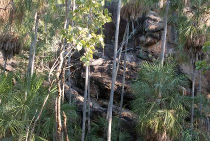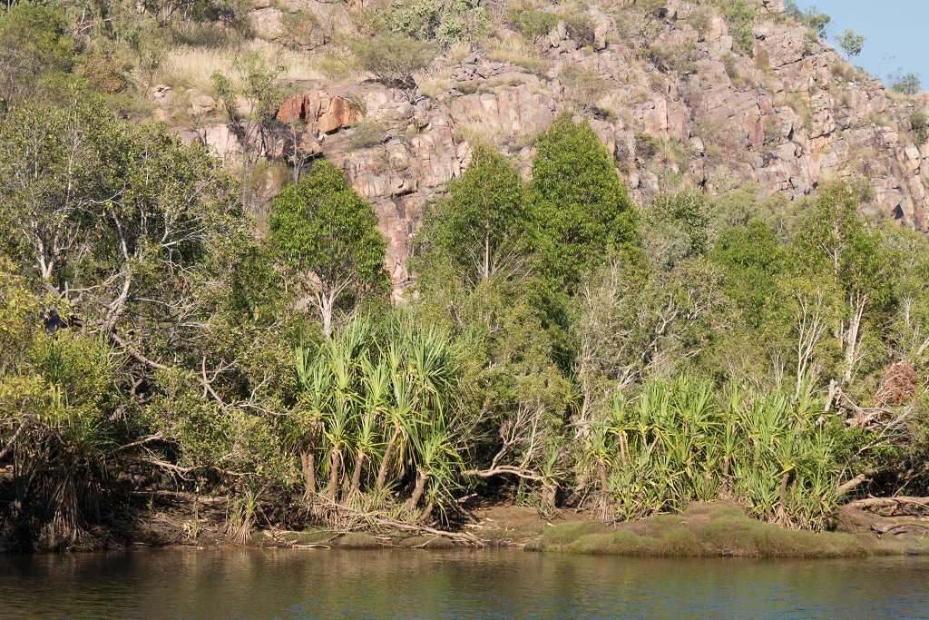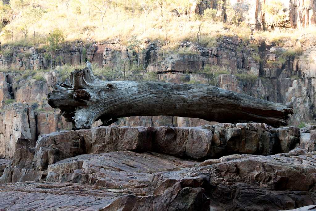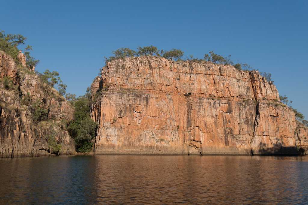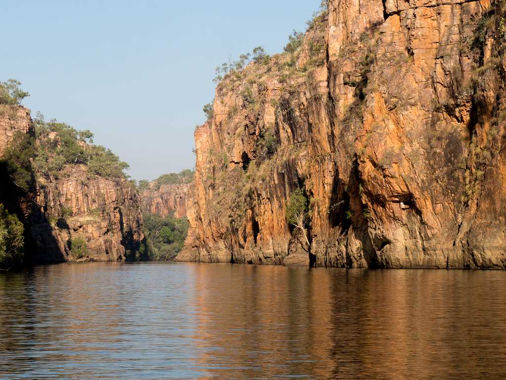 Anfangs noch relativ breit wird die Schlucht immer schmaler, die Felswände steiler. Wir gelangen an eine Bootsanlegestelle steigen aus und laufen etwa 600 m zu Fuß weiter. Bei diesem Spaziergang sehen wir einige Felszeichnungen sowie die Felswände der Katherine Gorge noch einmal aus einer neuen Perspektive.