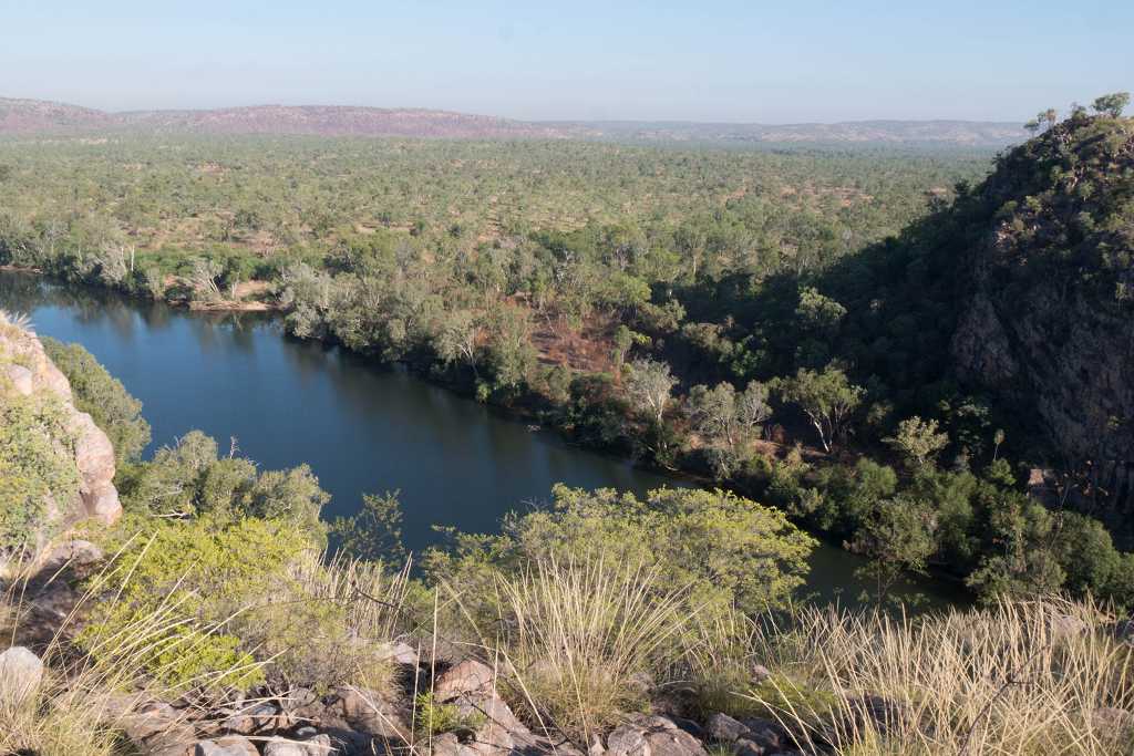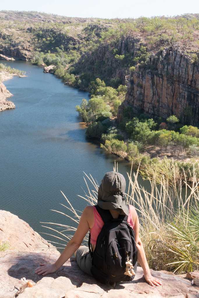 Auch am nächsten Morgen starten wir unsere Wanderung wieder frühzeitig. Der „Baruwei Loop Walk“ verläuft erst im Tal des Katherine River, steigt dann auf der Südseite hoch zum Plateau der viele kilometerlangen Schlucht.