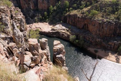 Das Baden im oberen Pool ist dagegen herrlich erfrischend und lässt uns die letzte Wegstrecke bis Katherine Gorge auch noch erträglicher schaffen.