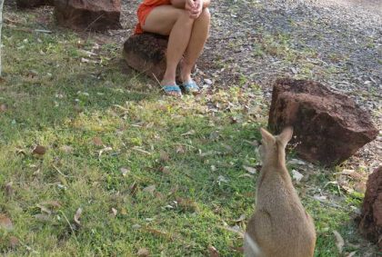 Auch sehr nett anzusehen sind die vielen Papageien, Kookaburras und zwei Kängurus am Abend.