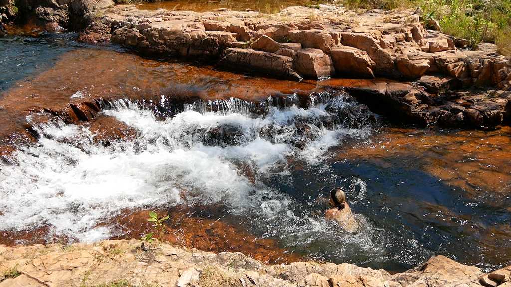 Baden im wunderschönen Pool des Wasserfalls ist momentan leider wegen der Krokodilgefahr untersagt.