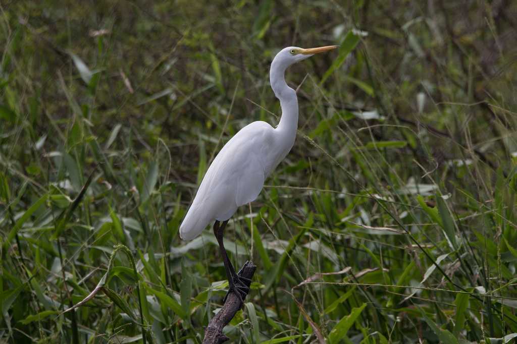 Wir wandern durch wilden, dichten „Monsoonforest“ mit 10 m hohen Palmen und anderen tropischen Pflanzen. Im Unterholz können wir gut erkennen, dass der Fluss zu manchen Zeiten viel breiter und höher fließt! Büschel von Gräsern, Laub und anderen Pflanzenteilen haben sich in 30-40 cm Höhe in den Astgabeln der Bäume verfangen.