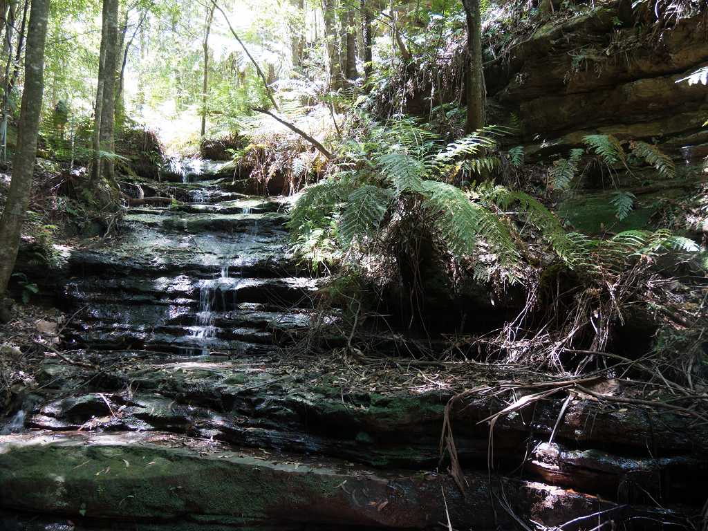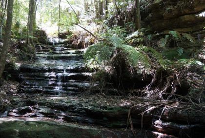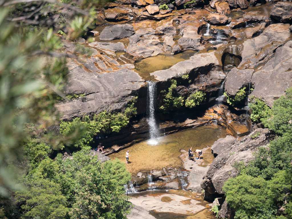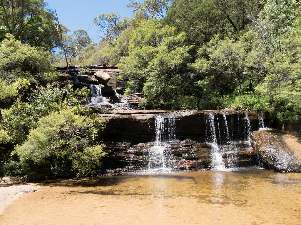 Der letzte Wegabschnitt ist von großer Hitze mit 32 Grad Celsius geprägt. Er führt passend dazu durch sandigen Boden und lichten Trockenwald. Eine willkommene Erfrischung wäre jetzt ein Bad im Govetts Leap Falls, aber leider ist er nicht zugänglich, sondern nur von einem Lookout zu bestaunen.