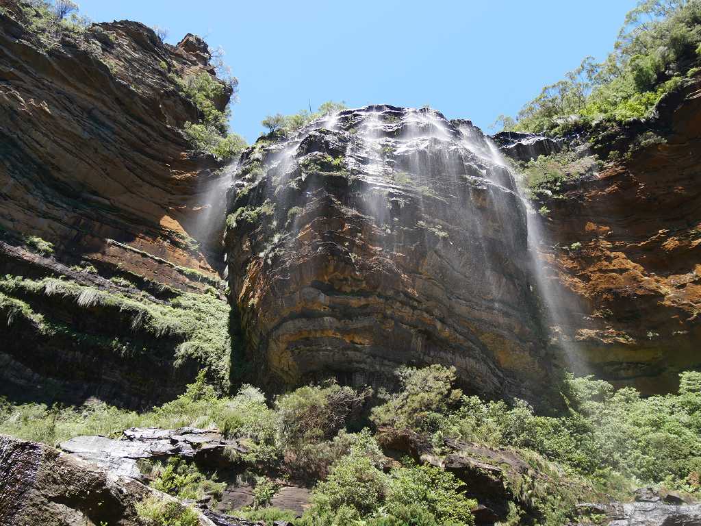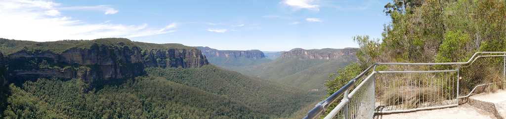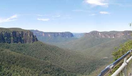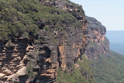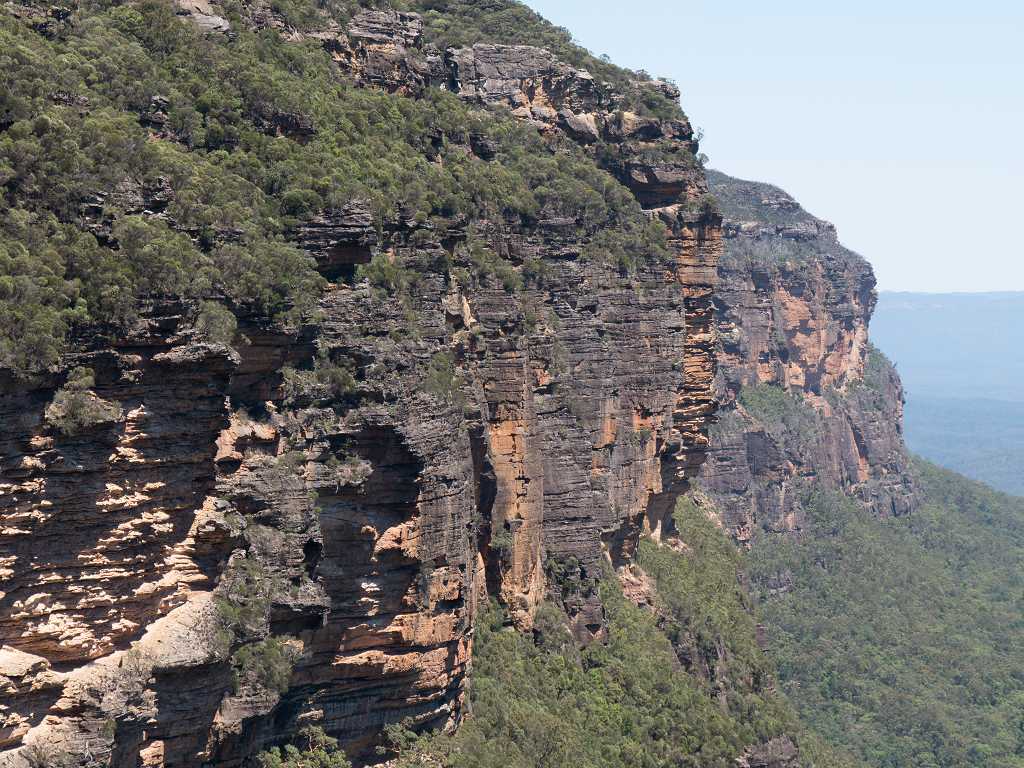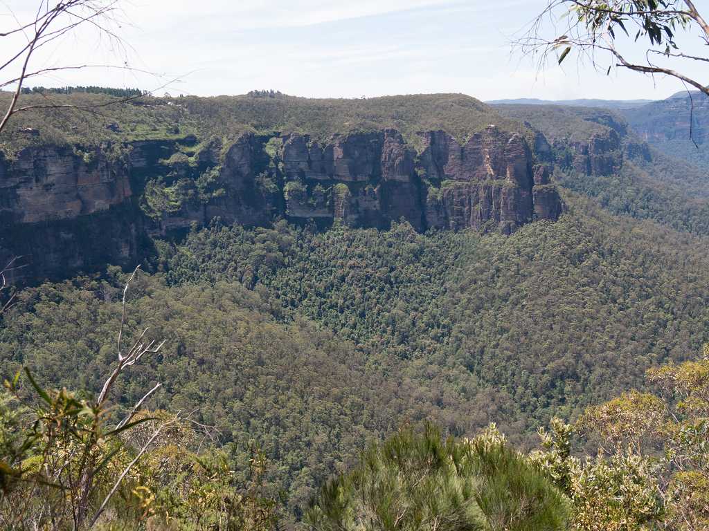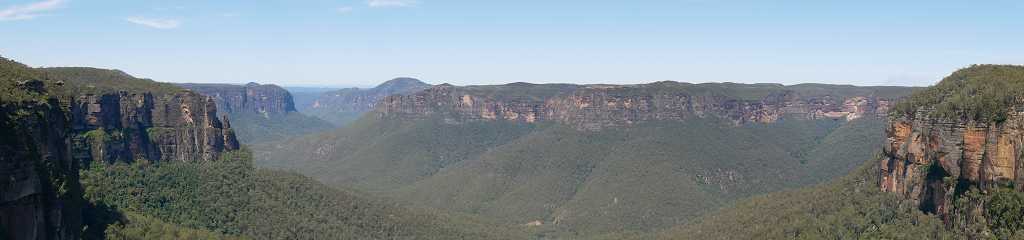 Hier lässt sich besonders anschaulich die Entstehungsgeschichte der Blue Mountains erkennen. Sie beginnt mit der Ansammlung verschiedener Materialien bereits vor etwa 190 bis 230 Millionen Jahren. Diesen Vorgang sieht man an den farbigen Schichtungen der bis zu 200m tiefen Schluchten noch heute. In den vergangenen 2 bis 60 Millionen Jahren hoben sich diese Erdmassen an, wodurch die Great Dividing Range und somit die Blue Mountains geformt wurden. Weiterhin deuten einige übriggebliebene Basaltspitzen der Berge auf die ehemals vulkanischen Aktivitäten der Region hin. Das Material wurde im Lauf der Zeit durch Wind- und Wassererosion zersetzt, wodurch Formationen wie die Three Sisters und die fast schon senkrechten Felswände der Täler entstanden.