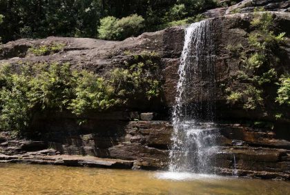 Der Weg führt an der oberen Abbruchkante eines Hochplateaus entlang und gibt traumhafte Blicke auf eindrucksvolle Schluchten, dichte Wälder und Wasserfälle frei. Wir beobachten Papageien und andere Vögel, so mache Echse kreuzt unseren Weg.