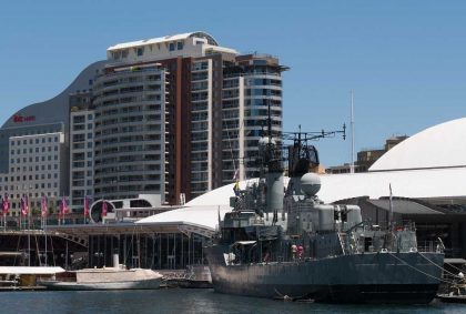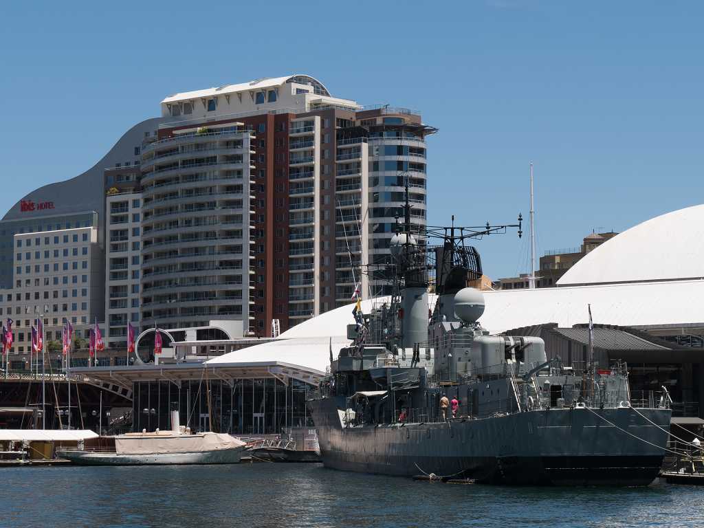 Aber nun noch einmal zurück nach Sydney, wir fahren mit dem Zug zur Barangaroo Wharf, laufen die King Street Wharf mit Wildlife Zoo, Madame Tussauds und Sea Life Aquarium entlang und sehen hinüber zum National Marine Museum, wo drei große Schiffen zu besichtigen sind. Die das Hafenbecken querende Pyrmont Bridge verbindet die beiden Hafenseiten miteinander.