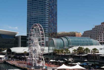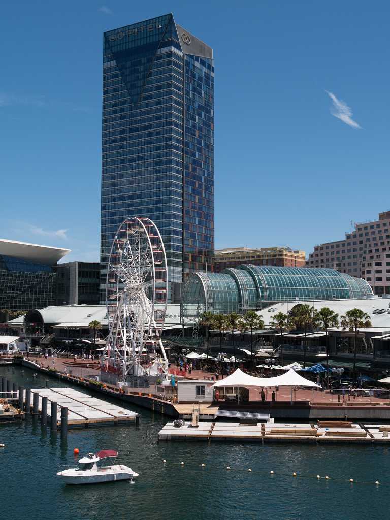 Weiter durchstreifen wir den legendären Stadtteil Darling Barbour, ein kulturelles Zentrum mit Theater, Konferenz Zentren, Erholungsparks, dem Chinesischen Garten und Hard Rock Café.